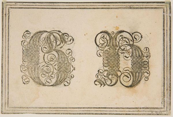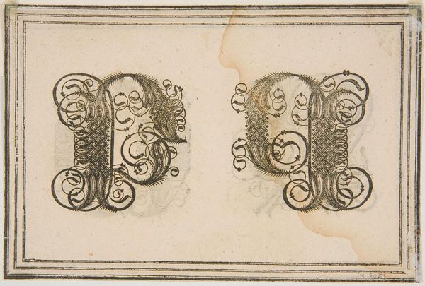 Curator: Here we have an intriguing drawing, "Letters L and M," by an anonymous artist, housed at the Harvard Art Museums. Editor: My first impression is of elaborate ornamentation, a sort of controlled chaos rendered in monochrome. The detail is quite striking! Curator: Indeed. The letters are brimming with symbolic potential. The intertwined forms evoke ideas of interconnectedness, perhaps even a mystical union. Editor: I'm more struck by the labor involved. Consider the tools, the precise hand movements needed to create such intricate designs. It speaks to a culture valuing skilled craftsmanship. Curator: And the cultural memory embedded in these forms! These letterforms carry echoes of medieval illuminated manuscripts, a lineage of visual communication. Editor: Absolutely, but it’s also about the materiality—the paper, the ink, their availability and cost at the time. It gives us a sense of the economic and social conditions of its creation. Curator: It's a dance between the tangible and the transcendent. A reminder that even the most seemingly decorative element can hold profound significance. Editor: Right, and that the means of production are just as revealing as the final product itself. Curator: A fascinating glimpse into the past, viewed through different lenses. Editor: Indeed, a reminder that art is as much about process and context as it is about meaning.