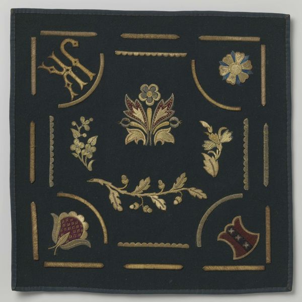 This encaustic tile was made by the American Encaustic Tiling Company sometime between 1875 and 1935. The company, based in Zanesville, Ohio, was one of the largest tile manufacturers in the United States. Here, we see a square tile adorned with stylized floral and foliate motifs, rendered in contrasting colors. The visual vocabulary is derived from historical precedents, echoing medieval designs, and reflects the broader Arts and Crafts movement's turn away from industrialization. The company mass-produced tiles that were then used in both domestic and commercial architectural settings. To understand the tile fully, we might consider the company's catalogues and archival records to illuminate the social and economic factors shaping its production and distribution. The tile bridges the gap between craft and industry, art and utility, reminding us that art is always contingent on its social and institutional context.