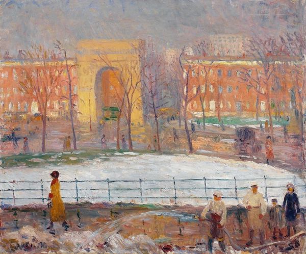 William James Glackens painted “Descending from the Bus” during the early twentieth century as the city of New York was undergoing unprecedented growth and change. As part of the Ashcan School, Glackens was committed to representing urban life, choosing everyday scenes over traditional, academic subjects. This painting offers us a glimpse into a specific moment: passengers disembarking near Washington Square Park, framed by the iconic Washington Arch. The figures are rendered with a loose, impressionistic style, their identities somewhat obscured, which invites us to focus on their actions and interactions. What might they be thinking? Where are they headed? This work encapsulates a sense of movement, change and the anonymity of city life, which was a shared reality for many during this era. It’s an emotional and visual record of the transformation of modern life.