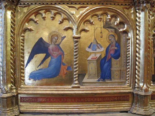 Editor: So, here we have Lo Scheggia's "Madonna and Child with Saints Sebastian, Lazarus, Mary Magdalene, and Martha" from around 1450, painted in tempera, it seems. It feels both serene and unsettling, perhaps because the saints look a bit…melancholy? What strikes you about this work? Curator: What strikes me is the very intentional gathering of figures associated with healing and societal outcasts. Lazarus, resurrected from the dead, becomes a symbol of hope amidst plague; Sebastian, a protector against disease; Mary Magdalene, often representing repentant women; and Martha, embodying domesticity and service. This grouping isn't random. It's a deliberate commentary on the needs of the vulnerable. What does it tell us about societal concerns of the time? Editor: So it's about who is included… the outcasts, those in need of divine intervention? I hadn't considered that the selection of saints themselves formed such a pointed narrative. Curator: Exactly! Think about the historical context – plague, social upheaval. Who was offered salvation, and who was left behind? Notice also where Mary Magdalene and Martha are situated; to either side of Mary and Christ they take on the status of important protectors in society. The very composition implies questions about access to power and the roles available to women. What’s gained, do you think, by portraying them this way? Editor: Hmm, framing them as intercessors... It shifts the power dynamic. Rather than being passive, they actively participate in accessing divine grace, almost empowering women. Curator: Precisely. And doesn't it also raise questions about our own modern biases about women’s roles and their representation in religious narratives? We should reflect how art continues to be shaped, viewed, and contested in ways that mirror our society's ever evolving conversations on identity. Editor: I never would have noticed the nuance embedded in the character choices. Thank you. Curator: It's a good reminder that art speaks volumes when we listen critically.