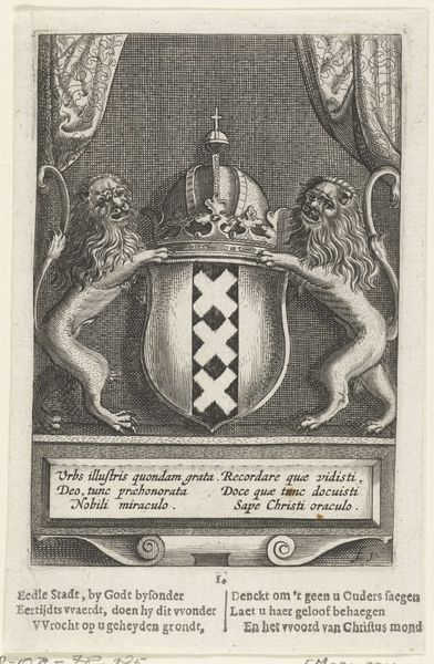 This is Bernard Picart's 1729 engraving of the coat of arms of William IV, now held in the Rijksmuseum. The composition is densely packed with symbolic elements meticulously rendered through fine, controlled lines. Note the heraldic shield crowned with elaborate ornamentation, flanked by regal lions, and backed by military paraphernalia. The meticulous detail and symmetry suggest a desire to convey authority and tradition. Picart uses line and form to create a visual language of power. The lions, for example, are not just decorative; they function as structural supports, framing the shield and underscoring its symbolic weight. The arrangement of weapons behind the shield adds another layer, creating a visual echo of protection and strength. Consider how the crown atop the shield serves not only as an emblem of royalty, but also as a compositional keystone, uniting the various elements into a cohesive whole. In this way Picart transforms a heraldic emblem into a complex statement about identity, authority, and cultural memory.