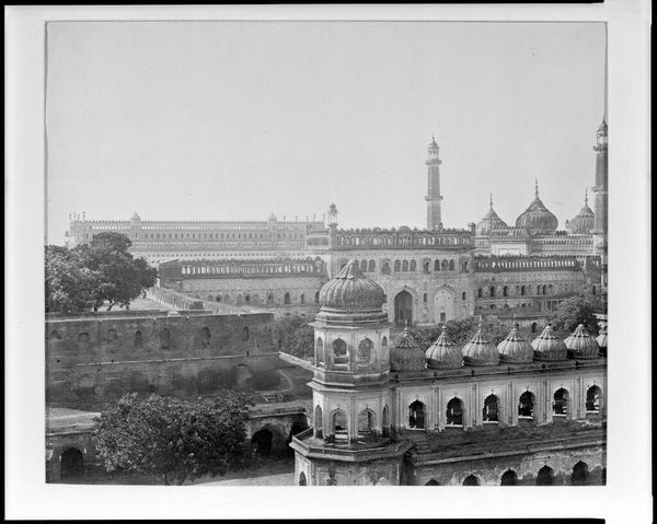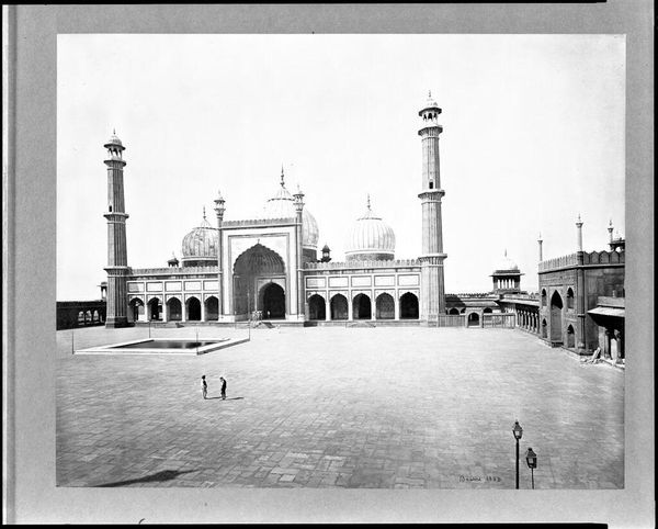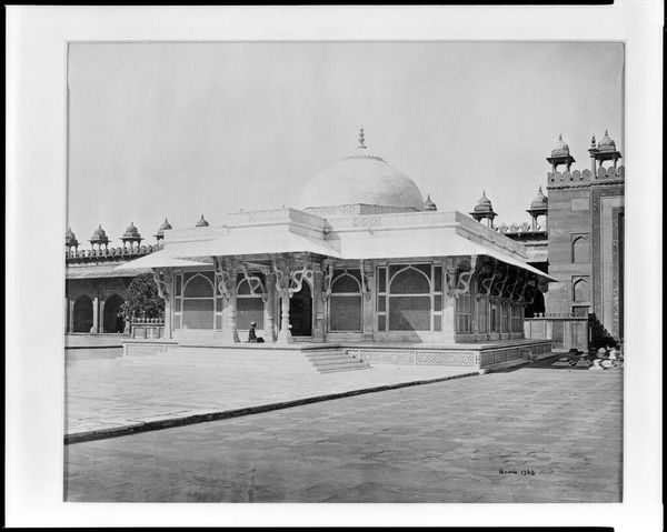 Editor: This photograph, "Agra, the Taj from the River" by Samuel Bourne, captures the Taj Mahal in stunning detail. The still water creates a beautiful reflection, almost doubling the monument. What sociopolitical tensions might be present in a Western photographer capturing this monument? Curator: Bourne's photograph exists within a complicated colonial framework. As a British photographer, Bourne's gaze arguably objectifies the Taj Mahal, transforming it into a symbol of British control and power in India. Consider the power dynamics at play, who is seeing, and who is being seen? Editor: That's a perspective I hadn't considered. So, it's not just a beautiful image, but also a statement about colonial power? Curator: Precisely. The photograph’s aesthetic appeal masks underlying power structures, influencing how viewers perceive India and its architectural heritage. Editor: Thank you. I will never look at this photograph the same way again.