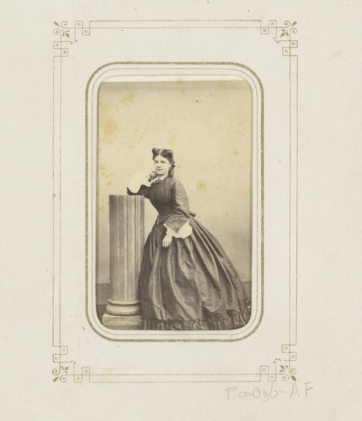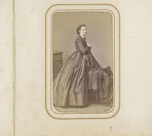 This photograph, titled 'Portret van een vrouw bij een tafel', comes to us from the studio of Moira & Haigh. In this portrait, the sitter’s body is almost completely engulfed by her enormous skirt, a convention of the time. With one hand resting on the table, her gaze rises to meet the viewer, but there's something guarded, almost melancholic in her expression. The framing accentuates the performative aspect of portraiture, while simultaneously capturing something of the sitter’s interiority. Consider the historical context: As photography democratized portraiture, images of women often reinforced societal expectations. Yet, within these constraints, there were also possibilities for agency and self-expression. How does this portrait both adhere to and subtly challenge those expectations, inviting us to reflect on the complexities of female identity in that time?