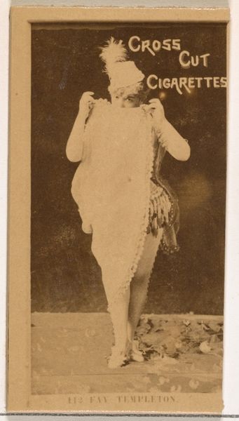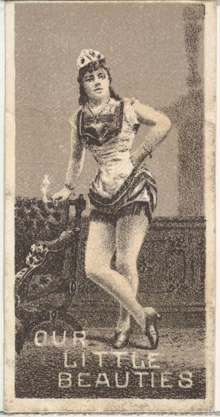 Editor: Here we have "From the Actresses series (N57) promoting Our Little Beauties Cigarettes for Allen & Ginter brand tobacco products," a print from 1890, housed here at the Met. I'm immediately struck by its overt commercialism and the rather…stilted pose of the woman. What do you see in this piece in terms of its historical context? Curator: Well, first it’s interesting to note its connection to both the commercial sphere *and* the burgeoning world of celebrity. These cards were inserted into cigarette packs, essentially using actresses as a marketing tool. What we now see as a kind of kitsch was very much a deliberate move to associate tobacco products with glamour and success. How do you think this imagery played into the social perception of actresses at the time? Editor: It seems almost paradoxical – it elevates these actresses in a way by immortalizing their images, yet it also reduces them to a simple sales tactic, objectifying them to sell cigarettes. Curator: Exactly. This card, and others like it, played a role in shaping public opinion, blurring the line between genuine appreciation of talent and pure commercial exploitation. Consider the phrase "Our Little Beauties," with its inherent paternalism. Editor: It's definitely a loaded phrase. The casual objectification is pretty shocking. Curator: And this was all happening within a very specific socio-political climate, with debates raging about women’s roles and public image. The card becomes a battleground, reflecting anxieties and aspirations around female representation. Think about how it differs from contemporary marketing that employs celebrities. What do you think is the biggest difference? Editor: The subtlety, probably. Now, it’s all about "authenticity" and endorsements that seem organic. This feels blatant, yet fascinatingly so. Curator: It truly lays bare the mechanics of celebrity and advertising, offering us a potent insight into a very particular moment in social and commercial history. Editor: Looking at it through that lens definitely changes my perspective. It is much more than a simple advertisement. Curator: Precisely. There's so much cultural information packed into one little card.