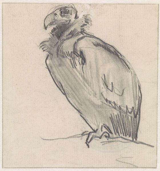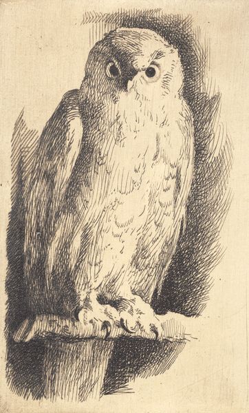This is a drawing of the Great American Harpy, made with ink on paper by an anonymous artist. The composition centers on a majestic bird perched on a branch, rendered with meticulous detail through fine, closely-knit lines that delineate its feathers and form. The monochromatic palette accentuates the interplay of light and shadow, giving the figure a sculptural presence on the flat page. The precise draftsmanship reflects a scientific approach to depicting nature, aligning with Enlightenment-era efforts to classify and document the natural world. The harpy, a creature of mythology, destabilizes established meanings as the artist renders it with a taxonomic precision usually reserved for real specimens, thereby blurring the boundaries between myth and reality. Notice how the strategic use of hatching and cross-hatching not only models the bird's form but also conveys a sense of texture, inviting the viewer to consider the material qualities of both the subject and the medium. The drawing's overall effect is one of poised observation, capturing a moment of natural history through a lens of artistic inquiry.