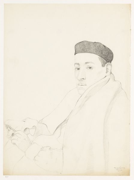 Curator: Willem Witsen’s “Portrait of a Sundanese Man,” created around 1921, is now here with us at the Rijksmuseum. Editor: It’s remarkably sparse, isn’t it? Just pencil on paper, but with such intense concentration in the eyes. There's a vulnerability too. Curator: Witsen belonged to a circle of artists who depicted the Dutch East Indies. It's worth remembering the socio-political context of that period—Dutch colonialism. Images like these participated in shaping public perception, creating visual records of the colonized. Editor: Right, but look at the line work. See how economical his marks are? The pressure applied, the varying directions. This wasn't a mechanical reproduction; this was an encounter mediated by material. What sort of pencil would provide that tone, that broken mark? Was that paper stock chosen carefully? These aren’t inconsequential choices. Curator: It certainly captures a moment in time, filtered through the lens of the artist. Was he aiming for scientific accuracy or artistic expression? The soft rendering adds an element of humanity to the man. Was he a commissioned subject, or a man encountered? Editor: Exactly! It’s almost like we're intruding on a private, almost unguarded, moment. That quick drawing encapsulates a sense of observation. Is the Western gaze truly innocent here, when capturing a fleeting instant of a Sundanese man, especially through readily accessible materials like pencil and paper of the time? Curator: You've introduced a layer of interrogation that is welcome. But isn’t it also about representation? Witsen chose to depict this man, giving him visibility within a Dutch museum context, of all places. Editor: Visibility, yes, but on whose terms? And made using materials directly connected to that time's social structures and economy. To really *see* this work, one must confront all these tangible dimensions. It’s all implicated in the artwork. Curator: I think that’s what’s interesting here. The work raises important historical and social questions about image making. It prompts consideration on how people were perceived. Editor: Indeed, and the humble medium should not disguise that very charged social, political context either. Let's think more about it.