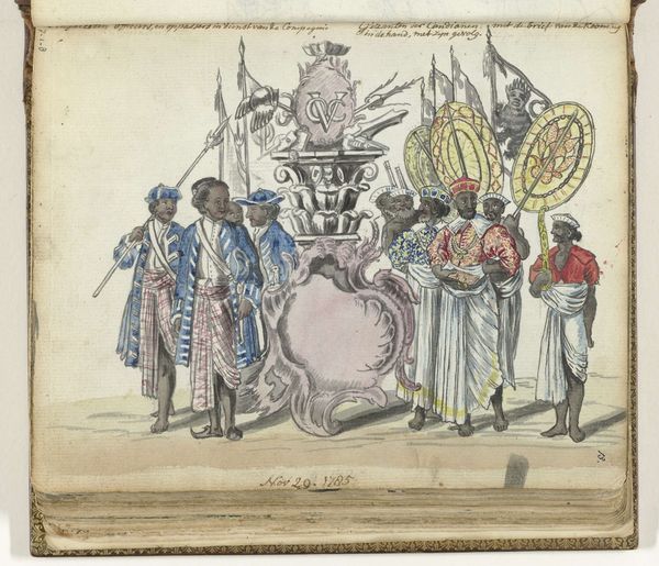 Edouard de Beaumont created this print, "Caricature of a grenadier who must remain on his post," using lithography. The composition is structured by a stark contrast: the dark-skinned grenadier in the foreground and the light-skinned sailor. The grenadier’s checkered trousers and towering headdress command immediate attention. This visual discord destabilizes established meanings, forcing us to question the values and power structures at play. Beaumont’s semiotic system uses clothing and skin tone as signs to communicate social and political messages. The artist challenges fixed meanings and engages with new ways of thinking about representation. This lithograph serves not only as an aesthetic object but also as a provocation, prompting an ongoing interpretation of its cultural and philosophical discourse.
