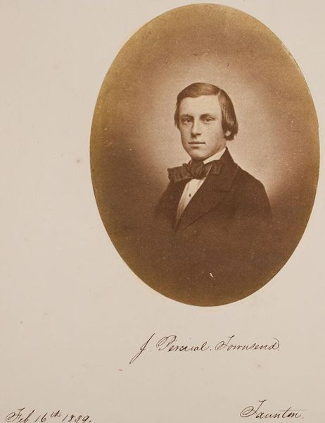 Editor: Here we have a portrait of Samuel Henry Eells from Boston, captured by John Adams Whipple. It's quite striking how the sepia tones lend a sense of gravitas. What can you tell me about the materials and processes used here? Curator: This photograph, likely a daguerreotype or early paper print, is not just an image, but an artifact of labor and industry. Think about the silver, the chemicals, the specialized knowledge required. How does this shift our understanding of portraiture at the time? Editor: It makes it seem less spontaneous, more a deliberate act involving many elements. It's interesting to consider it in terms of production! I hadn't thought about it that way. Curator: Precisely. And who had access to such technology and materials? These early photographic portraits were often a signifier of a certain economic status. Understanding the means by which this portrait came to be offers a fascinating lens for interpreting its meaning. Editor: This changes my perspective completely. Thanks!