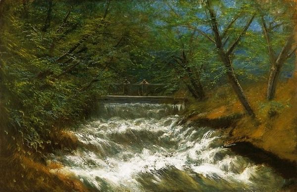 Jean-Joseph-Xavier Bidauld painted "View of the Cascade of the Gorge near Allevard," a landscape with a rigid structure where nature is neatly organized into distinct zones. The cascading water dominates the foreground and is painted with great attention to detail. Notice how the brushstrokes capture the textures and movement of the water as it plunges over the rocks. The landscape's formal arrangement is interesting. The composition is divided horizontally into bands. These bands are arranged by the foreground, and they recede successively into the background with mountains painted in a softened, hazy manner. The artist’s precise rendering of natural forms reflects a formal approach that aligns with the values of clarity and order, which were central to the artistic conventions of the time. This landscape painting serves not just as a depiction of a real place, but as a study in visual organization and the conceptual ordering of nature.