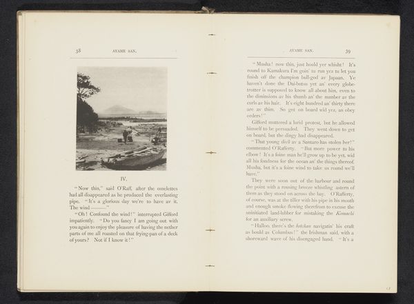Curator: So, here we have “Gezicht op een meer te Japan,” or “View of a Lake in Japan,” a photographic print made before 1892 by William Kinnimond Burton. What strikes you initially? Editor: It’s like peering into a hushed secret, isn’t it? All silvery greys and the quiet suggestion of a breeze…it's melancholic. And the stark printing within the book gives it the air of found discovery, adding layers of feeling and intrigue to this subtle landscape. Curator: Absolutely. And knowing Burton’s background—trained as an engineer but finding photography later—makes you think about the means of production and about his technical experimentation, in line with Japan's rapid industrialisation and the introduction of photography there. Also, it connects with Japonisme in Europe – the import and adaptation of Japanese styles. Editor: Indeed. The composition leads me to wonder what the making of it was like. It feels intuitive and less contrived than, say, a posed studio portrait of that period. Like, did he choose to use his bulky gear right at this spot to capture it so organically? What did he felt as the landscape became part of this tangible thing, the print? I like to wonder! Curator: It’s intriguing to consider. And given the context, Ukiyo-e prints had been circulating in Europe for decades prior, and Burton was actively engaging with this style, translating those flat planes and considered compositions into his photographic vision, merging modern technology with the themes that informed older aesthetic languages. It becomes part of larger flow and exchange. Editor: Exactly, it also gives us an understanding on the culture surrounding material circulation, production, and reception during the peak era of Japonisme. Thinking beyond individual artistry to think what’s around it always makes things feel a lot more tangible! Curator: A wonderful thought. So we step away with that deeper understanding of how images of Japan and a specific approach to making impacted culture during a key time. Editor: For sure!