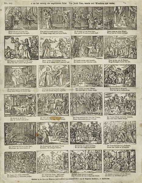 This monochrome print, titled "De koopman en de knecht" was created by the successors of Charles Burckhardt. Its date remains unknown. This work depicts a morality tale in a comic strip format. Through its visual storytelling, it's reminiscent of the popular broadsides of the 19th century, offering easily digestible narratives for a wide audience. The story unfolds with a merchant and his servant, delving into themes of greed, betrayal, and ultimate justice, reflecting the socio-economic anxieties of the time. The detailed imagery provides insights into the values and norms of the period. Was this artwork created in response to the rampant capitalism of the era? Or was it created to reinforce social hierarchies? To further understand this work, we can look into the archives of popular presses and cultural institutions. By studying the material culture of the time, we gain insights into the ever-evolving relationship between art and society.