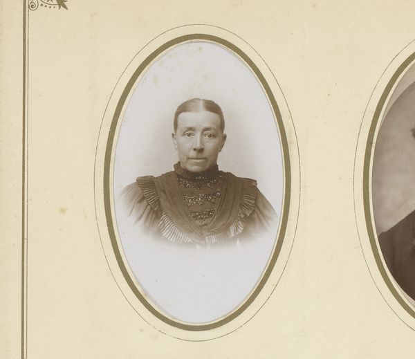 Editor: Here we have a vintage photograph, *Portret van een vrouw met West-Friese klederdrachtmuts,* or *Portrait of a Woman in West Frisian Traditional Dress*, dating somewhere between 1883 and 1910, attributed to Johannes Laurens Theodorus Huijsen. It’s an albumen print, a bit sepia-toned...it makes me think about faded memories and old family albums. The woman’s gaze is so direct! What do you read into it? Curator: Ah, she does have that unwavering gaze, doesn't she? It makes me wonder about her story. It's more than just a pretty picture. Given the time period and her traditional West Frisian attire – especially that intricate bonnet – it evokes a certain pride in regional identity, almost like a gentle act of resistance against the encroaching forces of modernization. Do you feel that tension as well? The still point amidst what had to be a hectic transitional time. I like to think about that liminal space. Editor: Resistance? That’s interesting, I was just thinking about a frozen moment. It felt posed to me rather than defiant. Curator: Perhaps it's both. These photographs, intended for albums, served as calling cards to posterity, a way of saying, "I was here." But consider also what wasn't photographed, who *wasn’t* photographed, especially from more rural, traditional communities. Selecting to be portrayed this way, and documenting those visual markers of regionalism, is significant to me. Don't you find the light intriguing? Soft yet defined; it highlights her face while gently fading out what would likely be much harder realities. The choice, that choice alone, feels very present to me. Editor: I see what you mean about the act of choosing! I never thought of old portraiture as a method of preserving something about identity like that. Curator: Exactly. And perhaps it’s just a sweet memento! That’s what I adore about art - the ever-swirling, fluid, often chaotic and conflicting meanings, all right there on the surface. What a charming photograph!