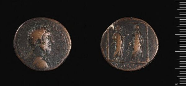 Editor: This is a coin of Julia Mamaea, whereabouts unknown. Its worn surface and small size make me wonder about its past and how it was made. What can you tell me? Curator: We can think of this coin as a form of early mass production. The material, likely bronze, was readily available, allowing for widespread distribution of the image of Julia Mamaea. Consider the labor involved in creating the die, the striking process, and the potential for profit. Editor: So, it's less about artistic expression and more about economics and material conditions? Curator: Precisely. The coin's value stems from its material and its role in the exchange system, embedding Julia Mamaea's image within trade and power structures. The wear and tear is part of the life of a product consumed in exchange. Editor: That's a fascinating perspective, it makes me consider coins as more than just currency. Curator: Indeed, examining the coin through a material lens reveals its complex social and economic significance.
