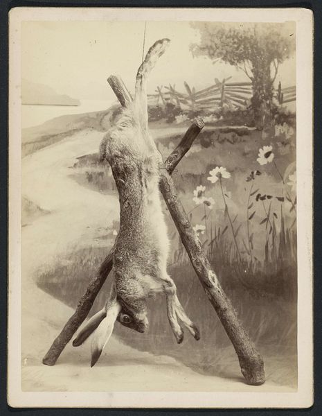 Robert Wilfred Skeffington Lutwidge, born in 1802, made this photograph, "Still Life and Embroidery" during a time when photography was rapidly evolving, yet still imbued with the aesthetic sensibilities of painting. Here, dead game birds hang against a backdrop of draped fabric. The image evokes the Victorian era's complex relationship with nature, hunting, and domestic display. Consider the historical context: these were times of expanding empire and burgeoning industrialization, where nature was both romanticized and exploited. The still life, traditionally a genre celebrating abundance and skill, here takes on a darker tone. The birds, once symbols of vitality, are now objects of the gaze, preserved through the new medium of photography. The detailed rendering of their plumage, juxtaposed with the delicate embroidery, speaks to a Victorian fascination with detail and a certain aestheticization of death. How does this image reflect the societal values and artistic conventions of its time, and what does it reveal about our enduring fascination with capturing and framing the natural world?