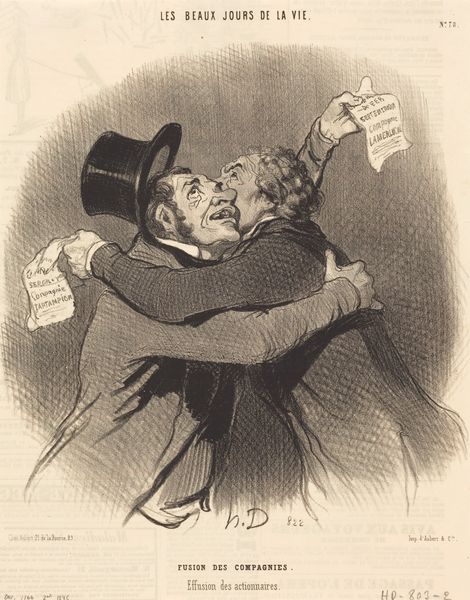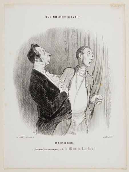 This lithograph, by Honoré Daumier, captures a moment laden with social commentary. Look at the figure on the left, his arms crossed, embodying a certain arrogance. This stance, a visual echo of power, reminds us of ancient rulers depicted in stone reliefs, asserting dominance through posture. Consider the open mouth of the man on the right, frozen in surprise. Gestures like this, betraying a sense of shock and unease, have appeared across time, perhaps most famously in Edvard Munch’s The Scream. It is interesting to reflect on how the feeling of shock can transcend time, resurfacing across different periods. It is an image filled with class anxiety. Daumier uses these symbols to touch upon deeply rooted tensions and the psychological weight of social mobility. A powerful force engages us on a deep, subconscious level, reminding us of the cyclical nature of social struggles and the ever-present human desire for recognition.