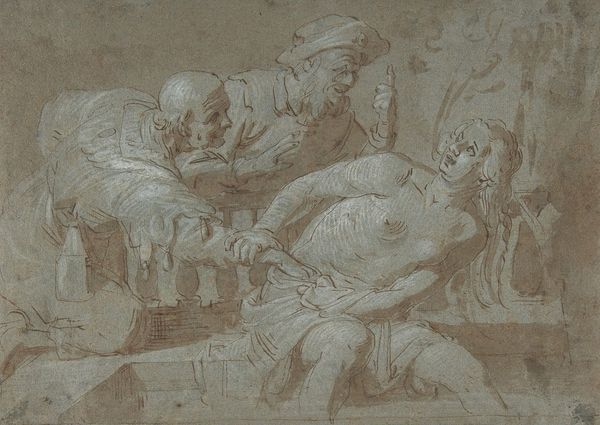 Editor: We are looking at Pierre-Paul Prud'hon's "Le Soir", created around 1800. It’s a charcoal drawing, and it strikes me as so gentle and dreamlike. The soft shading really adds to that feeling. How would you interpret this work? Curator: It certainly has a lovely, quiet mood. For me, "Le Soir"—meaning "The Evening"— evokes that sense of winding down, a preparation for rest. I can almost feel the cool evening air. The allegorical figures enhance that feeling, don’t you think? Notice how the central female figure seems to be pausing, almost caught in a moment of serene contemplation, as putti, cherubic figures associated with love or transition, accompany her into the night. Prud'hon uses the charcoal medium so cleverly; it creates an almost ethereal quality. What feelings arise as you view the central figure and surrounding cherubs? Editor: They feel classical, definitely. Like they belong in a myth or a dreamscape. Curator: Exactly! Prud'hon’s embrace of Romanticism allows a gentle expression, very personal and free. What I see here is the intimate approach to dusk and its myriad suggestions. Doesn't the tonal subtlety enhance that? The interplay of light and shadow becomes its own story. I see the invitation of reverie; the pause before darkness. A dream! It's incredibly delicate, this depiction of tranquility. Editor: Yes! Now I understand why you call it so atmospheric. It truly captures a mood. It makes you reflect along with the drawing! Thanks for the help. Curator: My pleasure! Art invites us to slow down and feel. It helps to perceive both our impressions and context. That is a gift.