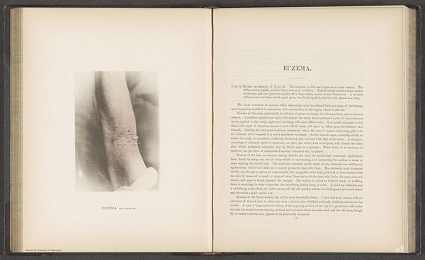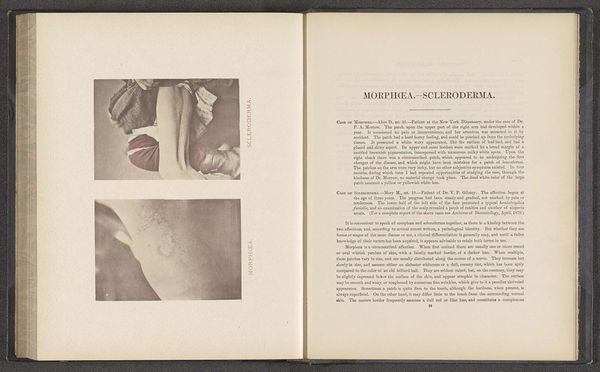 Curator: Have you ever felt like you were peering into a lost world? That's the feeling I get when I look at this photographic print. It's entitled "Twee aanblikken van een voetzool met symptomen van syfilis," or "Two Views of a Sole of the Foot with Symptoms of Syphilis." The images are believed to be taken before 1894 by Albert Ludwig Sigesmund Neisser. Editor: Woah. Right off the bat, it's clinical. Cold, even. The stark contrast of the black and white photography heightens the severity of the images. But there is an element of care to how it’s laid out—as though Neisser felt a certain duty to record and preserve even that which most would prefer to ignore. The meticulous presentation almost softens the disturbing subject matter. Curator: That’s an interesting read, framing a difficult piece. I agree about that clinical nature you identified—photography at this time was advancing in medicine as a vital new documentation tool, one capable of capturing a precision beyond simple written description. Think about the social and ethical context of depicting disease like this back then, and the scientific advances it helped make possible. Neisser was a pioneer in bacteriology, remember—he identified the bacteria that causes gonorrhea! Editor: It also makes me think about the body as a site of both incredible vulnerability and incredible resilience. Syphilis was devastating, yes, but it also carried tremendous social stigma—the “unspeakable disease.” Looking at these images, it's easy to forget the human being attached to this foot, but the social consequences of a syphilis diagnosis extended far beyond just the physical symptoms. There were moral judgements attached, layered with ideas about sexuality, class, race... it was a perfect storm of prejudice. Curator: A lot to unpack. Seeing these stark images also sparks a dialogue in my mind between aesthetics and ethics. In the same way that flowers have symbolic relevance across varying cultures, the body becomes an arena onto which beliefs about morality, health, and beauty are writ large. It's an uncomfortable space. What can be learned from images of this nature that extends past what can be learned by other medical illustrations of its kind? Editor: I suppose, looking at it now, I wonder if Neisser recognized this, if at all, at the time. Perhaps his intention wasn't to make a grandiose ethical statement. Maybe this was all strictly medical in his perspective—just raw data collection. That said, looking back now, our contemporary views add so many more layers of complexity to these unassuming prints!