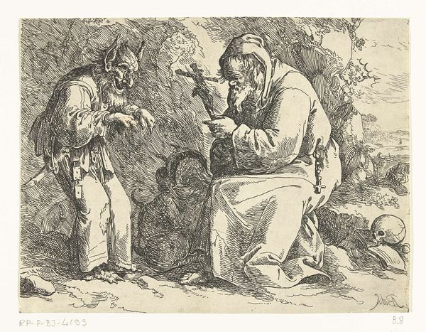 Editor: Right, let’s dive into this intriguing piece, Adam Elsheimer’s "Tobias and the Angel." It's a detailed drawing with charcoal and pen-and-ink work from the collection of the National Gallery of Australia. I'm really struck by the almost anxious, secretive mood. What stands out to you about it? Curator: What strikes me is less the *mood* and more its relationship to artistic patronage. The story of Tobias and the Angel resonated deeply in the 17th century because it's a tale of divine protection and guidance. For whom might such imagery hold power or provide comfort, and where might this scene be hung, to best convey that meaning? Elsheimer was working for a sophisticated audience. His visual choices weren't just aesthetic; they were deeply embedded in the social and political currents of the time. Editor: So, the image itself is almost secondary to its intended social effect? Is that why it might have appeared in specific galleries and homes, to signal power and taste? Curator: Exactly. Think about the rise of wealthy merchant families. Art becomes a tool for displaying wealth, morality and education. Elsheimer, by referencing a religious story with themes of protection, is subtly legitimizing his patrons' status and even advertising *himself* as a capable maker of such images. Where does it fit within debates about faith, authority, and the role of the individual? How does that shape the way it communicates? Editor: So we shouldn't just look at the pretty picture. We should understand the cultural conversations happening. Thank you! Curator: Precisely! Now we are one step closer to unraveling some the layered contexts that make up this compelling piece.