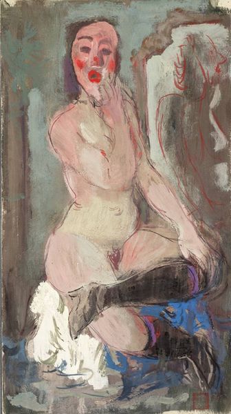 Curator: Here we have Denman Waldo Ross's "Portrait of a Seated Young Man" from the Harvard Art Museums. Editor: It has this quiet, almost melancholy air. The brushstrokes feel so immediate. Curator: Ross was deeply engaged with theories of design and color harmony. This piece invites consideration of gender and representation in early 20th century art. Editor: The visible brushwork is fascinating; you can almost feel the artist at work with his materials. It really showcases the process over precision. Curator: Indeed. Ross's approach to portraiture challenges traditional academic norms of representation and opens up queer interpretations. Editor: Absolutely. The rough texture and limited color palette really underscore its raw, almost unfinished quality. Curator: It’s a powerful reminder of how we can challenge established notions of beauty and identity. Editor: It's really quite captivating, both for its process and its ability to evoke such a reflective mood.