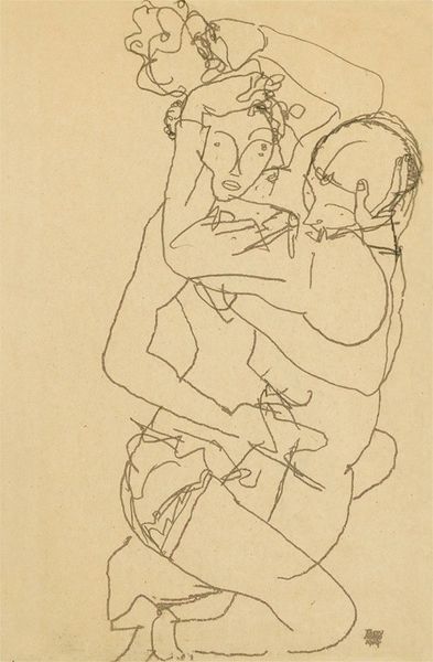 Curator: Here we have a preliminary drawing, made in pencil on paper by Leo Gestel around 1932-33. It's titled "Schets voor 'L'art Hollandais contemporain' van Paul Fierens (baadsters)," which translates to "Sketch for 'Contemporary Dutch Art' by Paul Fierens (Bathers)." Editor: The first thing that strikes me is the stark simplicity. The sketch, featuring two reclining figures, seems so vulnerable in its unadorned state, offering just enough detail to ignite our imagination. There's an intimacy here, almost as if we’ve stumbled upon a private moment between the artist and his idea. Curator: It's interesting that you say that, because the "bathers" theme has deep roots in art history, often symbolizing leisure, sensuality, and a return to nature. It is clear Gestel is evoking classical iconography of reclining women. We also know he associated with Paul Fierens, so the artwork should probably be put into dialogue with what he expected from him. Editor: Exactly, the association with "Contemporary Dutch Art" is crucial here. This isn’t just about escaping to nature; it's about how Dutch identity is negotiated and visualized in a rapidly changing world. This scene, though seemingly timeless, engages with debates on modern identity, representations of women, and evolving societal values. Curator: Indeed, and these women…there is a kind of melancholy resignation present in them. The heavy-lidded eyes, the slumped posture – it carries an emotional weight. This melancholic posture aligns well with ancient tropes, suggesting women and reflection. Perhaps Gestel sees the same relationship, women associated to being in touch with oneself through emotional labor? Editor: I appreciate your take. It pushes me to consider the political dimensions too. The 1930s were a time of global upheaval, witnessing growing authoritarianism. Could this melancholic posture reflect a broader sense of anxiety or perhaps disillusionment? A resistance to the prevailing socio-political forces of that time. It's important not to strip away the artist from this historical setting. Curator: That's insightful! Looking at the composition, the drawing provides no easy answers and evokes complexity in its subject. The medium is a clear departure from the classical tradition the poses attempt to echo. Editor: I'm left pondering the silent dialogues in this piece. What are these women thinking? What were the political hopes that Gestel was envisioning for this piece? It reminds me how art invites us into conversations with the past and also pushes us to ask difficult questions of the present. Curator: For me, this brief encounter with Gestel’s work highlights the power of symbols across centuries, all coalescing here, today.