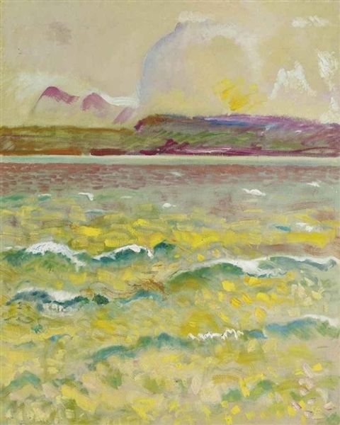 Curator: Henri Martin, the creator of this expressive seascape entitled "Au Bord De La Mer," really evokes a sense of raw emotion in his rendering. Editor: It certainly does. Looking at the churning blues and greens of the sea, and the tumultuous clouds gathering above, there's a palpable feeling of tension, maybe even foreboding. Curator: I wonder if that unease comes from a particular historical moment. Impressionism often grappled with the rapidly changing world. How do you see that context shaping this artwork? Were there certain socio-political undercurrents influencing even something as seemingly benign as a seascape? Editor: Undoubtedly. Landscapes, seascapes included, became vital for national identity construction in France, especially after periods of turmoil like the Franco-Prussian War. Consider also the burgeoning tourism industry – seaside destinations were rapidly becoming leisure spaces. These images bolstered the appeal, sanitizing realities like maritime labor and the environmental impact. Curator: So, this image, through its absence of specific human activity, becomes almost symbolic. I'm seeing a discourse on ownership, possibly, or an idealized fantasy accessible only to a certain segment of society, primarily white and well-off. It reminds me how visual media and popular belief become tools to create exclusivity through landscapes. Editor: Precisely! And technically, that brushwork reinforces this curated vision. Quick, broad strokes idealizing a "perfect day". While not overtly political, the imagery is absolutely participating in broader socio-economic conversations of the time. It subtly underscores who is given permission to be at peace in this scene. Curator: It's powerful how even in an ostensibly natural scene, the brushstrokes, color choices, and composition embed layers of socio-political commentary on national and class identity. A reminder of how no work of art is ever truly apolitical. Editor: Absolutely. Considering the historical period, this scene becomes as much about what’s deliberately excluded as what's represented, prompting consideration for our perceptions of public space. Curator: These interpretations highlight the enduring resonance art offers and invites conversations regarding its political implications in past eras and the pressing matters of today. Editor: Right, looking at Martin's seascape through a critical lens certainly adds a new layer to its appreciation, doesn't it?