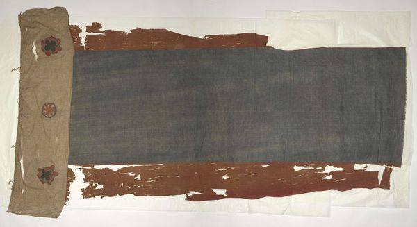 This Fragment of a Ship Flag was likely constructed from various pieces of salvaged fabric by an anonymous maker. Patches of coarsely woven material have been sewn together with thick stitches, which, along with discoloration and tears, evidence significant wear and age. The flag's patchwork construction speaks to the resourcefulness required on long sea voyages. The maker skillfully combined available materials, likely under challenging conditions, to create a functional object. This process highlights the practical skills integral to maritime life, in contrast to the traditional artistry associated with flag-making. The flag is not only a symbol of identity and allegiance, but also evidence of labor, the hard work and social circumstances of the person who sewed it together, and all those who worked under it at sea. Paying attention to the materials and the processes used reveals the everyday struggles, but also the remarkable ingenuity, of those living and working on the sea.