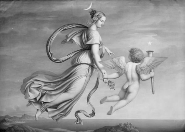 Editor: So, here we have Johann Georg Wahl's "Maxentius," painted sometime between 1796 and 1810. It's quite a dramatic scene. There's a palpable sense of struggle and chaos, and it clearly aims to capture a pivotal moment in history, from what I can gather. What do you see in this piece, especially regarding the way it blends historical narrative with such potent imagery? Curator: I see layers of meaning built upon historical and symbolic foundations. Wahl seems preoccupied with the iconography of power and its fragility. Notice how Maxentius is depicted, clinging to his horse, crown askew, in the throes of defeat. What do you think the placement of the discarded shield and armor at the lower right signifies? Editor: Perhaps they symbolize the abandonment of traditional values or the failure of military strength in the face of a greater force? Curator: Precisely! These discarded emblems aren't mere objects; they represent a shift in power, a change in the order. They also subtly nod towards Christian victory, hinting at a divine intervention that overpowers worldly strength. Also, the river itself becomes a potent symbol—a boundary crossed, a point of no return. Water often represents purification and transformation, but here, it becomes an agent of chaos and destruction. Editor: That's fascinating. I hadn't considered the symbolic weight of the river itself, viewing it more as just a setting for the event. Curator: Always look beyond the immediate action, young scholar. What elements are used repeatedly, and how do those resonate across cultures and time? This painting, steeped in Neoclassical aesthetics, attempts to fuse the literal with deeper, archetypal significances. Editor: This discussion really changed my view of the work. I walked away thinking it just captured chaos. I hadn't grasped at all the symbolic significance of the artifacts cast off during a historical and political transformation. Curator: That's the power of iconography: unveiling how visual symbols capture our memories and transcend generations.