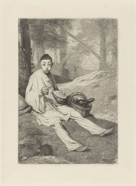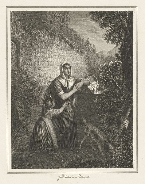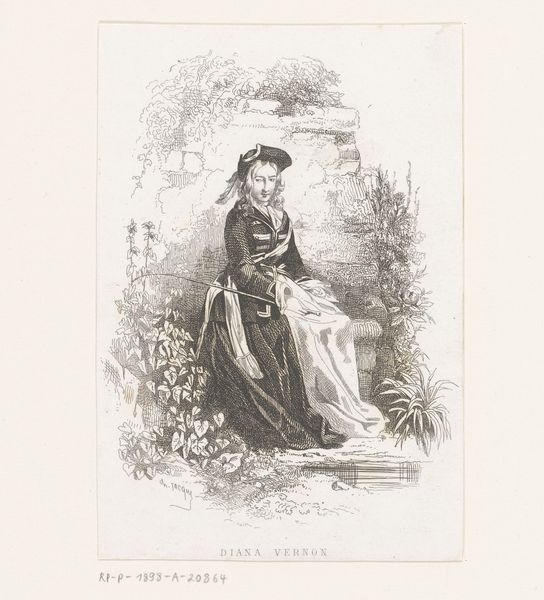 Editor: Here we have "Vrouw bij een meer," or "Woman by a Lake," an engraving by Christiaan Bos, dating from 1845 to 1904. The details are remarkable. It feels so delicate. What captures your attention in this piece? Curator: As a materialist, I am struck by the technical skill required to produce this print. Consider the labor involved in creating such fine lines, the conscious choices in the production of the image, and its reproductive qualities. How does the process itself contribute to the meaning? Editor: That’s a good question! I was really drawn to the image of the woman looking at the swallows flying overhead. Does her posture suggest a relationship to the labor implied in printmaking? Curator: Precisely. Notice how her ornate dress contrasts with the medium's accessibility. Engravings were, and are, fundamentally reproducible. What social class does this bring to mind in relation to accessibility? Editor: The emerging middle class maybe, wanting art, but unable to commission original paintings? So engravings democratize art, of sorts. Curator: Yes, to some extent. But we must also consider the socio-economic conditions that allowed Bos to produce it and its audience to consume it. Also, note how gender, and the sitter, were both consumed in the romantic movement. Editor: I hadn’t thought of it that way. Considering the materiality of the print allows a new perspective. Curator: It reframes our understanding of art and its consumption. And consumption shapes culture. Editor: This has broadened my perspective, thinking about the labor and material processes beyond the initial impression. Thanks for your insights!