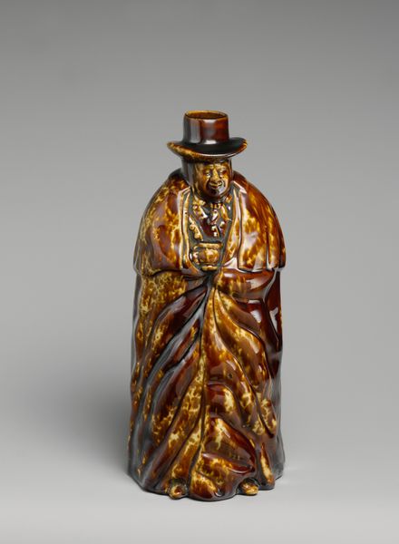 This paperweight was made by Lyman, Fenton & Co. in the late 19th century, crafted from glazed earthenware. This wasn't high art, but rather a product of the booming ceramics industry, designed for everyday use. The glaze is key here. It's a classic example of "Rockingham" or "Bennington" glaze, known for its mottled brown effect. This was achieved by combining different metallic oxides in the glaze mixture, which then separated during firing, creating a unique, almost marbled appearance. The form, a reclining dog on a cushion, was likely slip-cast in a mold, demonstrating the industrialized processes of the time. It reflects how manufacturers sought to add decorative appeal to functional items, capitalizing on the Victorian era's love of ornamentation and novelty. This paperweight speaks to the democratizing influence of industrial production, bringing artful design into the homes and lives of ordinary people, while also illustrating the skilled labor and ceramic techniques involved in its creation.