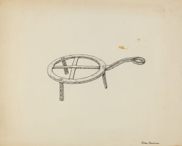Irene Lawson drew this "Flat Iron Holder" sometime in the 20th century using graphite or ink on paper. The first thing I notice is the careful, almost hesitant, mark-making. It's like she's feeling her way around the object, trying to capture its essence without getting bogged down in the details. The texture is all in those tiny, repetitive lines – the wood grain on the handle, the slightly uneven edges of the metal frame. There's a real sense of the handmade here. Look at how the lines wobble and thicken in places, especially where the legs meet the frame. It reminds me of some of Guston's later, more cartoonish works, where the clumsy, awkward lines become part of the emotional content. It is not trying to be slick, it’s letting the process show. This piece, like all art, isn’t about perfection, it’s about the artist's unique way of seeing and feeling the world.