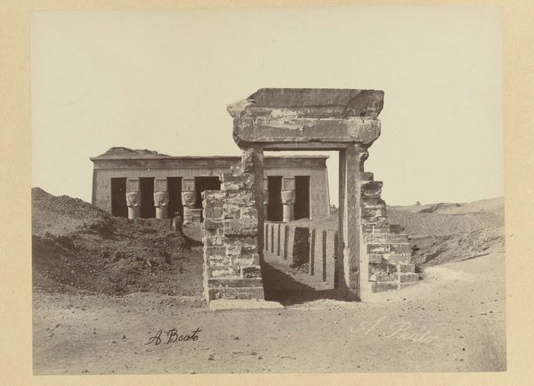 This photograph by Félix Teynard captures the Temple of Hathor at Dendera, a potent symbol of ancient Egyptian religious architecture. Notice the columns, each crowned with the face of Hathor, the goddess of love, beauty, and motherhood. These iconic Hathor-headed columns are not merely structural; they are carriers of deep cultural memory. Consider how such columnar forms echo through time, appearing in various guises across different cultures. The Egyptian lotus columns, for instance, share a symbolic language with the later Greek Corinthian columns, both reaching towards the heavens. The image of Hathor embodies a primal feminine force, a nurturing yet powerful presence. This archetype resurfaces in the countless representations of mother goddesses throughout history. The cyclical nature of symbols and their emotional resonance reveal our shared human experience. Hathor's serene gaze, immortalized in stone, invites us to contemplate the enduring power of love and beauty.