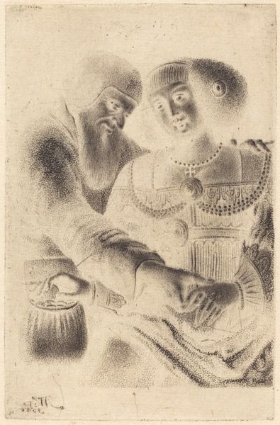 Editor: Here we have Julien-Léopold Boilly's "Portret van de advocaat Pierre-Édouard Lémontey" from 1822, an etching on paper. It’s incredibly detailed. What strikes me is its strangeness; it's this mix of meticulous craft and almost dreamlike imagery. What can you tell us about this piece? Curator: From a materialist perspective, I'm drawn to consider the means of its production. Boilly, primarily a painter, utilizes the etching process, a relatively accessible printmaking technique. How does the labor involved in creating this print – the repetitive action of etching lines, the materials used like the copper plate and acid – democratize art production and reception, challenging traditional distinctions between painting and printmaking? Editor: That's a fascinating point. So, it's not just about the image itself, but also about the social implications of its creation? Curator: Precisely. The act of etching allows for multiplication and wider distribution. How does that influence Lémontey's social standing and accessibility as a figure, transforming from a painted portrait for the elite to a printed image potentially circulated more broadly? This also begs the question, what type of paper and ink were used, and how do those choices reflect on access and artistic value at the time? Editor: Interesting. I hadn't considered the implications of using printmaking as a medium for portraiture then, compared to the higher status of painting at the time. Curator: Think about it in terms of the rise of the bourgeoisie. Etching provided a relatively inexpensive method for representing and consuming imagery and information. Boilly's choice might be indicative of the shifting landscape of art patronage and consumption, which were, in turn, affecting the portrayal of people. It moves us away from merely discussing symbolism and focuses our attention on material contexts and the social position of art itself. Editor: This really changes my view of the work. It is not simply a portrait of one person. Thanks, it definitely changes my thinking about the means of producing images back then.