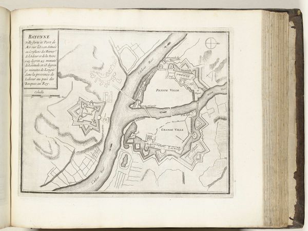Curator: Look at this remarkable engraving from around 1693-1695, a "Plattegrond van Le Havre" – a map of Le Havre, created anonymously, and held at the Rijksmuseum. The delicate pen work on paper, combined with the printed lines, captures the city and its surroundings with incredible precision. Editor: My initial impression is one of control, almost clinical. The careful hatching and geometrical shapes remind me that maps of cities weren't just about directions but asserting dominion. The fine lines making up each structure evoke a sense of careful production too, each pen stroke represents labour and skill. Curator: Precisely. Le Havre, a major port city in France, was of strategic importance. These city plans, of which there were many made, weren't just documents of geography, but of military and economic power, circulated among elites. The layout showcases the formal planning prevalent during that era, reflective of broader cultural and political systems. Editor: Absolutely, and I wonder who commissioned this particular piece and for what purpose? The precise execution hints at investment. Were these distributed amongst investors perhaps to highlight a booming, modern industrial economy, and, maybe they encouraged further exploitation and control? Curator: It's fascinating to consider. Maps also played a critical role in solidifying national identities, but this seems focused less on the picturesque, or what we today associate with 'art', and more on pragmatic visual representation. It also shows a specific engagement with that academic baroque art style. Editor: Speaking of that aesthetic—what paper and inks would they have used, and how might the production methods affected distribution and access? The labour to engrave these metal plates would have been a big commitment, signaling its importance in the reproduction. What were the socio-economic impacts and labour practices? Curator: A great question that expands beyond simply what is depicted and enters into its materiality, I appreciate you highlighting this point. The historical narrative behind cartography itself deserves further examination, especially when considering how these images were used by particular people to justify actions that served power. Editor: Agreed, analyzing these kinds of materials helps understand broader themes about control and resource distribution. These elements offer a wider insight into the time and intention for its production. Curator: Indeed, and remembering these historical and material components allows a better sense for this map of Le Harve from the 1690s. Editor: And considering all of that reveals how many layers of control these types of depictions represent.