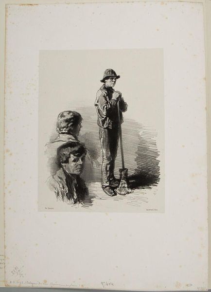 Curator: Here we have Adolf Oberlaender's "Peasant with a Pipe," a diminutive etching and drypoint piece residing here at the Harvard Art Museums. Editor: Oh, what a character! He looks like a disgruntled garden gnome, puffing away in his own little world. Curator: Indeed. The etching technique, particularly the drypoint, allowed Oberlaender to create those rich, velvety blacks in the figure's clothing and pipe. It highlights the toil, the very labor embedded in his social class. Editor: The smoke curling around him, though… almost like he's conjuring the landscape itself. It’s as if he’s both part of and somehow creating the very world he inhabits through each puff. Curator: An insightful point. Let us not overlook how this reflects a dialogue on labor representation in art, particularly around peasant identities. Editor: Well, I'm off to buy a pipe and see if I can conjure my own landscape! Curator: Ha! A fitting ambition, indeed. A reminder to us all of art's capacity for transformation.