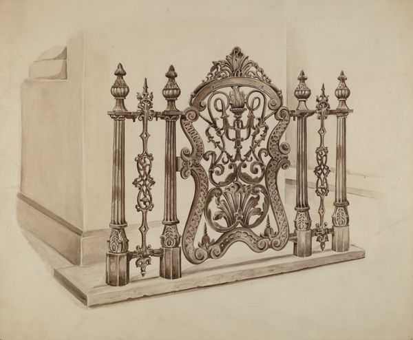 Jerome Hoxie made this drawing of a gate and gatepost in the late nineteenth or early twentieth century, with what looks like graphite on paper. The limited palette of grays and beiges, and the delicate hatching create a study of light and shadow as well as a detailed record of form. Look at the way Hoxie used the graphite to describe the ornate details of the ironwork. The tonal variations are so subtle. It's like he's feeling his way around the object, mapping its surfaces with his pencil. There’s an emphasis on line and contour, and the way that the shadows define the shapes, like the cast shadow on the beige surface behind the gate. It reminds me that artmaking is about process, about spending time observing and responding to the world around us. This piece reminds me a little of some of the architectural studies of Charles Sheeler. But whereas Sheeler’s work tends towards stark realism, Hoxie’s piece has a softer, more romantic quality. Ultimately art is an ongoing conversation across time, isn't it? It's all open to interpretation.