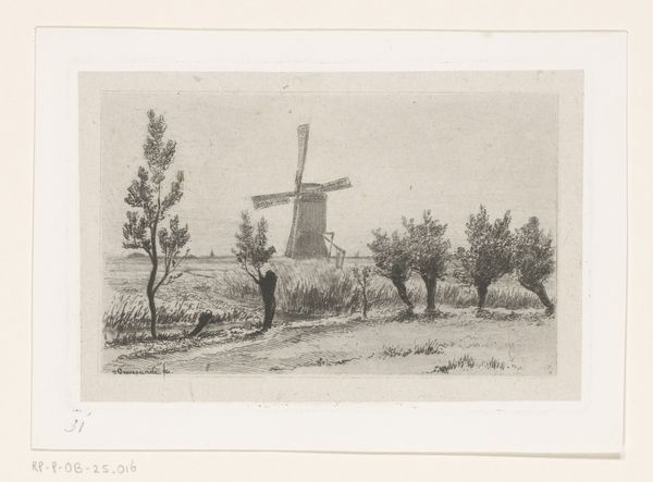 Wijnand Otto Jan Nieuwenkamp created this print of windmills on the Vlist between Haastrecht and Schoonhoven. During Nieuwenkamp's life, the Netherlands was undergoing rapid modernization, yet there was also a strong desire to preserve traditional Dutch culture. We can view this print as part of that cultural impulse. The windmills stand silhouetted against the sky, each one slightly different, as if portraits of individuals. These aren’t generic structures; they evoke a time when wind power shaped the landscape and the economy. Nieuwenkamp isn't just showing us windmills; he is inviting us to reflect on the shifting relationship between the past and the present. It prompts a consideration of how we value our histories and negotiate our identities in a world that is always changing.