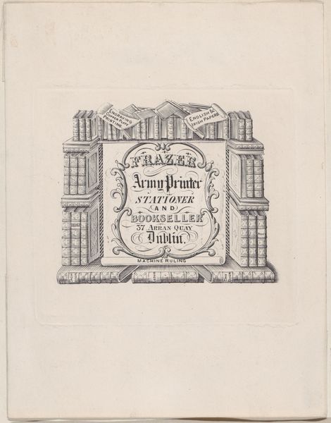 Editor: This is "Vrouwen bij kruidenier," or "Women at the Grocer's," an 1852 engraving by J. Sartor. The scene feels very still, almost staged, but I’m drawn to the textures created by the engraving, especially the intricate doorway. How do you interpret this work from a formal perspective? Curator: The success of this engraving rests upon Sartor’s command of line. Notice how the density of lines defines the tonal range, creating contrast between the brightly lit figures at the threshold and the shadowed interior. Consider the deliberate placement of figures; they are clustered, yet distinct. Editor: It's true. The doorway does act almost like a frame within a frame, emphasizing that contrast. How does that structure affect the viewer's experience? Curator: By controlling light and shadow through line density, the artist creates an illusion of depth. This in turn guides the eye across the composition, allowing us to appreciate not just the forms, but also the relationship between them, and the delicate rendering of each woman's garments, which denote texture and material quality. Also, observe the signs to either side of the entry way: the lettering and pictorial cues seem significant. Editor: I see what you mean. There’s "Thee" above a sign with a teacup, and “Waren" above what looks like spice jars. Did typography or other semiotic concerns play into the choices the artist might have been interested in when they made this piece? Curator: Exactly. The placement, size, and style of text integrate form with content and can create emphasis, so yes, these are formal semiotic considerations for Sartor. Editor: This piece now gives me a lot to think about beyond its seemingly straightforward depiction of everyday life! Curator: Indeed! Considering the formal devices at play encourages a deeper understanding.