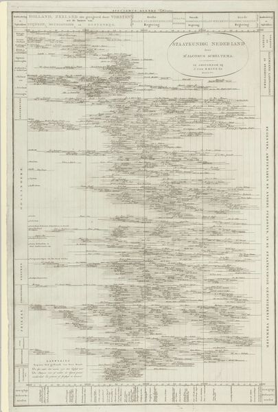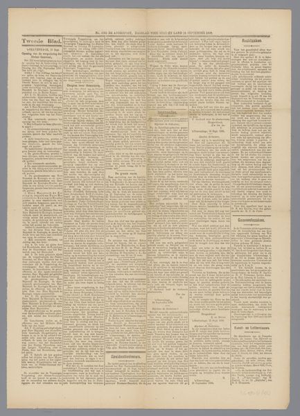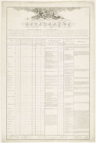 Curator: Looking at this print, "Krant met een stamboom van het Huis Nassau," dating probably from 1923 to 1928 and held here at the Rijksmuseum, it strikes me as both information and…well, let's just say dense. What's your initial take? Editor: My first thought is information overload. It's incredibly detailed. I feel a little lost just looking at all that tiny text. Is it meant to be understood at a glance, or is it more of a document to be studied? Curator: Definitely a document to be studied. It’s literally a family tree of the Dutch Royal House of Nassau presented in a newspaper format. Think about how public the private lives of Royals have always been, this object visually articulates these intertwined historical forces. Genealogy, legacy, and media all rolled into one print. Editor: I see what you mean about the publicity element. Putting a royal lineage in a newspaper makes it accessible. The choice of newspaper form is an interesting choice. I suppose it was aiming to legitimize the monarchy? To showcase its deep historical roots in a very public way. Did it feel more "official" being in the format people read every day for their news? Curator: Exactly! By placing it in the "De Telegraaf," it insinuates this history is also the stuff of daily relevance. The design with its formal typeface also mimics established historical displays—visually merging past legitimacy with present authority. Editor: It’s so intricate. I almost wonder about the choice of materials. It has a sense of both permanence and disposability because of the graphic-art medium, if that makes sense. What would possessing this object have represented? Was it collected, like a souvenir? Curator: Perhaps. Consider the socio-political context. This was a period of rebuilding after WWI, when ideas of national identity were powerful. Owning this print, displaying it even, could signify an allegiance or belonging—a literal investment in the Dutch royal story during times of societal shifts. Editor: It certainly gives you a lot to think about regarding the ways that we present and consume images of power. There are echoes to this day of trying to tie tradition to contemporary society. Curator: Precisely. It’s a complex piece. A seemingly simple family tree really opens a whole world of political communication in the early 20th century. It does feel kind of important to understand our cultural history and the subtle propaganda of how a monarchial power remains relevant over generations.