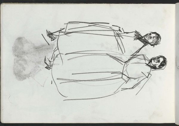 Editor: This is "Monk with tonsure in a cowl," a pencil drawing on paper by Johannes Bosboom, made sometime between 1845 and 1891. It feels like a quick sketch, almost ephemeral. What stands out to you in this drawing? Curator: The materiality is key here. Bosboom's choice of pencil and paper speaks to accessibility, both for the artist and potentially for the depicted monk. Think about the social context – the availability of these materials, the relative ease of their use. This contrasts sharply with the labor-intensive processes involved in, say, creating a large-scale oil painting depicting a member of the clergy. What does that tell us? Editor: It suggests maybe a more intimate, less formal interaction or observation, perhaps even hinting at the diminishing power of religious institutions and the rise of a more democratized artistic process. Curator: Precisely! Consider, too, the mass production of paper at this time, enabling the proliferation of sketches and drawings like this. How might this ease of production have impacted Bosboom’s artistic choices, the speed of his rendering, the market for such works? Is it fine art or merely craft? Editor: I hadn't really considered that; I was focused more on the subject and the way he was rendered. It's fascinating to think about how the materials themselves contribute to the meaning of the piece, and raise questions about what makes art valuable in the first place. Curator: Exactly. The very act of sketching, the immediacy and access it allows, challenges the traditional hierarchies within the art world itself and lets us reconsider how we perceive both the subject and the means through which art comes into being. Editor: I definitely learned to look beyond the subject of the piece, paying closer attention to the how and why it was made.