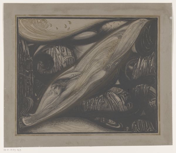Curator: Welcome! Before us is a striking 17th-century engraving titled "Aurora met nachtdieren in de duisternis," or "Aurora with nocturnal animals in the darkness," currently residing here at the Rijksmuseum. It's unsigned, attributed to an anonymous artist. What captures your eye first? Editor: It’s dramatic, bordering on chaotic. The dynamism is achieved through this incredible vortex of figures. It's predominantly grayscale, making the light sources feel incredibly potent, like slashes in the dark. Curator: Indeed, it’s quite a Baroque statement. Night creatures fill the dark skies, a stark contrast with the figures illuminated as dawn breaks, representing a clash of forces. There are allusions to knowledge being threatened by ignorance. The use of creatures usually relegated to darkness being included as figures shows that the symbols can be changed to better illustrate the story. Editor: It is visually clever. The artist employs line quality to achieve tonal variety, which in turn helps to communicate depth, particularly in the folds of the drapery. There's an attention to textural contrast with the wispy nature of the cloud with the density of those drapes. Curator: Symbolically, Aurora, the Roman goddess of dawn, dispels the darkness, representing the triumph of reason over ignorance. Even the specific animals included probably weren't random—the owls, bats—creatures traditionally associated with blindness. Editor: Looking closely, I noticed that the artist manipulates the negative space quite carefully to construct that implied, asymmetrical frame around the central figures. That trapezoidal structure gives it all direction. Curator: That frame within a frame focuses the viewer’s gaze, no doubt. There’s such potent storytelling here, really representative of the period’s anxieties about enlightenment and obscurity. Editor: I find that structure quite intriguing, thank you for this symbolic reading, that offers even more food for thought about how a relatively simple engraving achieves all this in a subtle manner. Curator: Thank you. It just confirms how much cultural meaning could be packed into the visual vocabulary of the time.