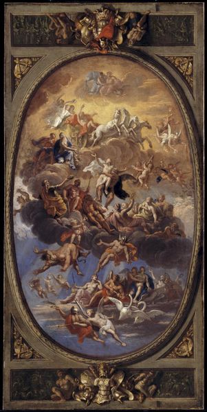 Curator: Here we have Paolo Veronese's "Assumption," created in 1558. It currently resides in the Basilica dei Santi Giovanni e Paolo in Venice. My initial reaction is a sense of dynamic energy, a vortex pulling me upwards! What grabs you? Editor: Well, the composition hits me first, I am immediately sucked into the drama and swirling motion as you pointed out, the Virgin Mary seemingly spiraling into the heavens! There's a raw, almost theatrical energy, with everyone looking up. Curator: The theatrics were deliberate, playing to Venice's taste for grand spectacles. What you see is a careful manipulation of perspective and color, using these to emphasize the divine miracle unfolding above, but for whom? Editor: The drama does seem performative; maybe it highlights the communal awe of it all – a collective gasp! I am now curious of the perspective we have been given, what's the socio-historical perspective? Curator: "Assumption," became popular during the Catholic Reformation, reaffirming central doctrines amid the rise of Protestantism. Paintings like these were explicitly meant to inspire and persuade viewers in public spaces, the artist creating them to remind you that the only view that mattered was what religion gave you. Editor: Oh, I love how the scene is grounded in the tangible world, where the artist painted ordinary people as religious ones and put it on full display. Their robes are tattered, and expressions so varied! Are they truly awestruck, or are there some skeptics in the crowd? What's so shocking they feel the need to capture that with their quills? Curator: I'd argue that these figures capture Venice at the time, in that they represent a range of reactions—from pious wonder to scholarly analysis. It underscores art's role in expressing—and sometimes mediating—the shifting currents of faith and knowledge of society. Editor: It makes me wonder what Veronese himself truly believed. The painting feels alive. Like he's captured a real moment of change—not just illustrating a doctrine, or did he? Curator: Veronese operated in a world shaped by religious expectations and elite patronage. To express a true feeling meant that he had to find innovative approaches. Editor: Innovative for who or what may I ask. All to cause more or of the same type of emotion. This dialogue makes one reconsider all aspects, which is the beauty. Curator: Precisely! Hopefully, this brief glimpse inspires us to continue questioning and reflecting.