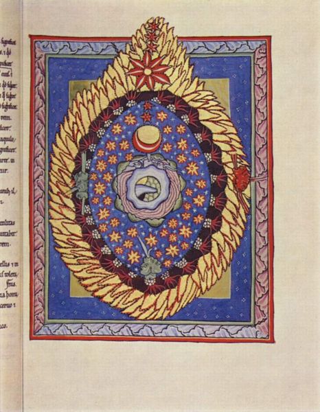 Adolf Wölfli made this drawing, with its long title that begins "Chrooslen=Ring=Koralle," using colored pencils and graphite. What strikes me is how Wölfli embraces the process, layering and weaving together these dense, intricate patterns. It’s all about the doing, the making, the building up of this visual world. Look at the central circle. It’s like a mandala, full of tiny numbers, faces, and fragmented shapes. The colors are muted, almost earthy, with pops of red and blue that draw you in. You can almost feel the artist’s hand moving across the page, meticulously filling every space. This feels like a conversation with Hilma af Klint, who also created complex, symbolic systems in her work. Both artists invite us to get lost in the details and find our own meaning within their visual language. Ultimately, this piece embraces ambiguity, allowing for multiple interpretations.