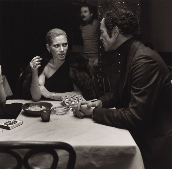 Robert Frank’s photograph, *Couple in Cafeteria--San Francisco*, captures a moment of everyday life. The silver gelatin print gives us a direct, unvarnished view of the subjects. The materiality of photography is crucial here. Unlike painting or sculpture, which require extensive handcraft, photography relies on mechanical reproduction. Frank used a 35mm Leica, a camera known for its portability and unobtrusiveness, allowing him to capture candid shots. The grainy, high-contrast aesthetic speaks to the social context of the 1950s. Frank's work challenged the polished imagery often seen in commercial photography, and reflected a sense of alienation and disillusionment prevalent in postwar America. The photograph implies themes of labor, class, and the act of consumption; a seemingly simple snapshot of a couple eating in a cafeteria becomes a reflection on the broader socio-economic landscape. Ultimately, *Couple in Cafeteria* reminds us that even the most seemingly straightforward images are deeply embedded in processes, materials, and social realities.