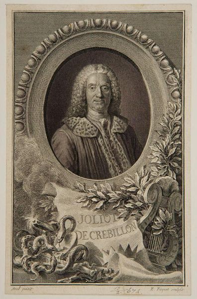 Curator: The intricate linework gives this portrait of Peter Barwick a rather stately air, wouldn’t you agree? Editor: Indeed. The way Vertue uses hatching to define the planes of Barwick's face and the voluminous wig is quite masterful. But let’s consider Barwick’s role: he was physician to Charles II. This portrait then becomes a statement about the power and status of the medical profession in the late 17th century. Curator: I see your point, but I am drawn to the formal elements. The oval frame, the architectural base—they lend a sense of classical authority. Editor: But this is not just about aesthetics. Images like these were carefully crafted to project an image of authority and legitimacy, shoring up the political landscape. Curator: Perhaps, but the artist's technique also elevates the subject, creating a timeless quality. Editor: I suppose, together, form and context are essential to our viewing experience. Curator: It is something to consider.