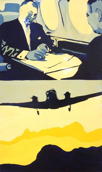 Editor: This is Audrey Flack's "Kennedy Motorcade" from 1964. It's a powerful image, painted with a directness that reminds me of Pop Art, yet there's something haunting about it, given the subject matter. What symbols or deeper meanings do you find embedded within this composition? Curator: Well, the most potent symbol here is arguably the motorcade itself. Convoys often symbolize power, progress, a linear march toward the future. But here, that hopeful imagery is fractured. There's an almost immediate tension, knowing the historical context. The open car, the bright daylight – they speak of vulnerability, a shocking contrast to the fortified protection we often associate with leaders. Does the bouquet near the rear evoke the funerary? Editor: Yes, now that you point it out, that cluster of red looks funereal rather than celebratory, like a premonition, and the way it almost merges with Jackie Kennedy's pink suit, makes it feel especially potent. The figures surrounding the car almost feel like a Greek chorus. Curator: Exactly. Think about the almost uniform appearance of the crowd – the pilots behind, for instance. They represent not just the supporting cast of power but also, in their impassivity, a kind of collective witness, an unwavering gaze focused on a pivotal, soon-to-be-traumatic moment. In many ways, it highlights the contrast between the powerful, who think they can make an unalterable stamp, and the vulnerable mortals within its wheels, at the mercy of time. What does this uniformity surrounding a select few leaders mean to you? Editor: That's a heavy observation. It almost feels like an indictment of hero worship, maybe questioning the narratives we build around those in power and our role in it. It's also a sober reminder about how even figures considered "greats" in history are at the whim of destiny. It gives me lots to ponder. Thanks! Curator: And it also shows us that the meaning we draw is constructed not only within the art itself but by what we bring as observers. Thank you for making this exchange truly illuminating.
