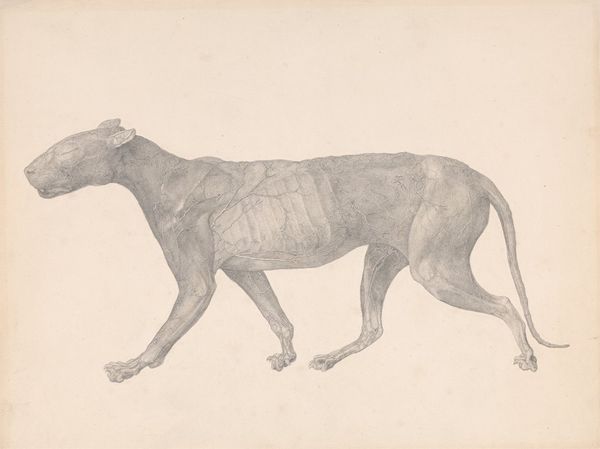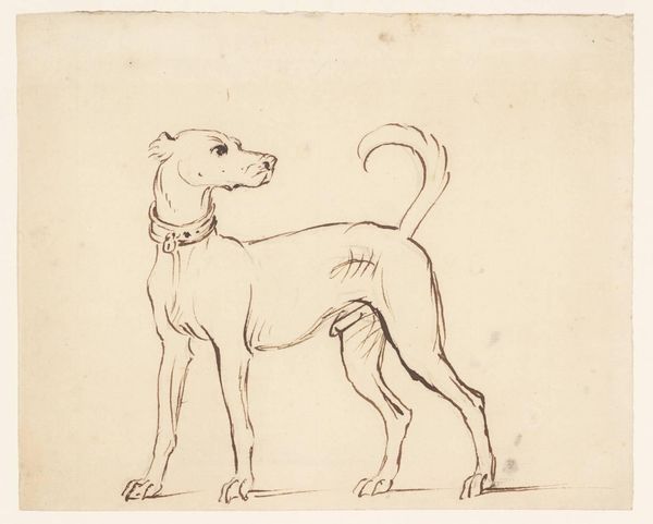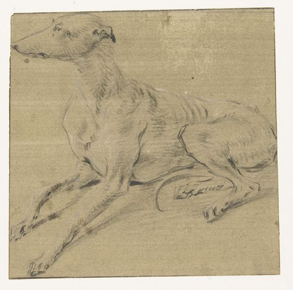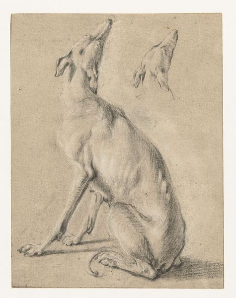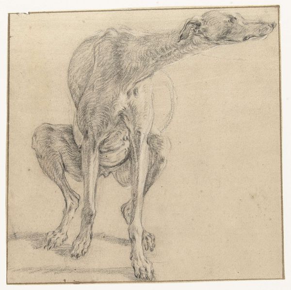 Jan Weenix created this drawing of a greyhound with chalk on paper sometime between 1661 and 1719. Weenix was the son of an architect and he was born in Amsterdam. He spent time in Utrecht as well, where he studied with various artists. This drawing can be seen as an example of the Dutch Golden Age interest in depicting the natural world with acute observation. However, it also reflects the social status of dogs during this time. Greyhounds, with their sleek, aristocratic bearing, were often associated with wealth and nobility, as these dogs were hunting companions of the elite. The dog's alert gaze and poised stance suggest a sense of anticipation and a readiness to serve its master. The greyhound isn't just a pet; it's a symbol of status, loyalty, and the complex relationships between humans and animals in Dutch society. Weenix captures this complexity, inviting us to reflect on the values and priorities of his time, as well as our own.