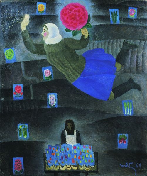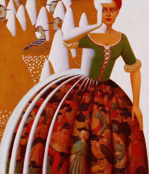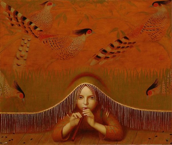 Zaya created 'Doll Maker' using the traditional materials of oil paint on canvas. The rough texture of the canvas is still visible beneath the layers of paint, adding depth to the image. The composition and color palette create a dreamlike atmosphere. The doll maker is surrounded by whimsical objects, suggesting a world of imagination and creation. She holds one of her dolls, as if contemplating the act of bringing something to life. The colorful patterns on her skirt and the floating objects add to the overall sense of playfulness. Zaya's work can be seen as a celebration of craft and creativity. It reminds us that the act of making can be a powerful way to connect with our inner selves and to create something meaningful in the world. This painting invites us to appreciate the skill and artistry of the doll maker, and to consider the importance of craft in our own lives. It challenges the traditional separation between art and craft, and reminds us that both can be sources of beauty and inspiration.