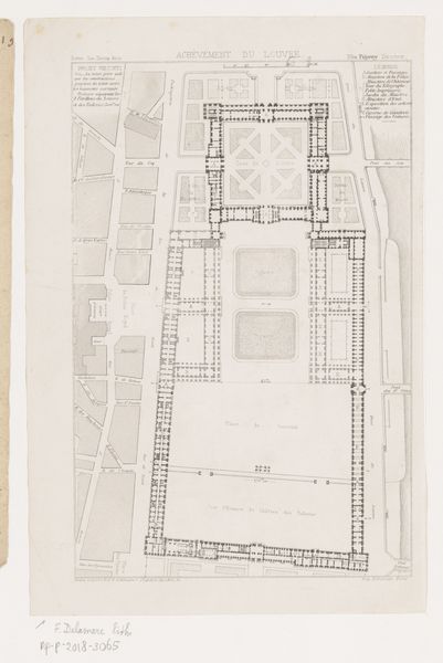 Curator: Ah, what a beautifully rendered cityscape. The crisp lines and muted palette give it such a sophisticated air. Editor: It looks almost like an X-ray of a city's bones. Cold, yet somehow compelling. What are we looking at here? Curator: This is "La Halle aux Blés, Street Plan," a print etching on paper, made sometime between 1805 and 1815 by Pierre François Léonard Fontaine. Currently it resides here, at The Met. Editor: Fontaine, eh? More like Fontaine of Youth… in urban planning, anyway. Look at the geometry, so clean. But does it feel sterile to you, too? It's all hard edges. Curator: Well, that’s Neoclassicism for you. Fontaine, along with his partner Percier, were key figures in shaping the architectural aesthetic of the Napoleonic era. This plan represents an idealized vision of urban space—rational, ordered, controlled. It speaks volumes about the era's socio-political aspirations for civic harmony. Editor: Harmony through domination of right angles, apparently! All jokes aside, it really does suggest a specific type of control, doesn't it? Less organic sprawl, more…dictated flow. The large, rounded structure smack in the middle of the upper district seems very central in this controlled reality. Curator: Precisely! That central structure, the Halle aux Blés, was envisioned as a powerful symbol of commerce and civic order. Notice how the surrounding streets radiate outward, literally structuring movement and exchange in and around the area? The point was to mold both people and urban space to fit this model of Neoclassical purity. Editor: Thinking about people moving around like automatons is giving me the chills. And you know, in some ways, modern city planning is still haunted by these ideas. The grid system that makes one walk the straight and narrow towards very defined hubs. But look at the shadows here... they almost hint that chaos will erupt between these buildings any minute now... Curator: A valid point. This seemingly neutral cartographic rendering conceals a deep-seated ambition to order society, something very relevant in the post-revolutionary France context. And its visual strategies remain surprisingly influential today. Editor: See, I look at this, and while my first impression was icy, I now also feel... a kind of frozen energy? A sense that life is somehow held in check, poised to explode into a new shape. Thank you, Fontaine, for reminding me the importance of getting lost sometimes! Curator: Absolutely! Artworks like this challenge us to question the very frameworks through which we perceive our world, especially in an urban setting. A powerful document, really.