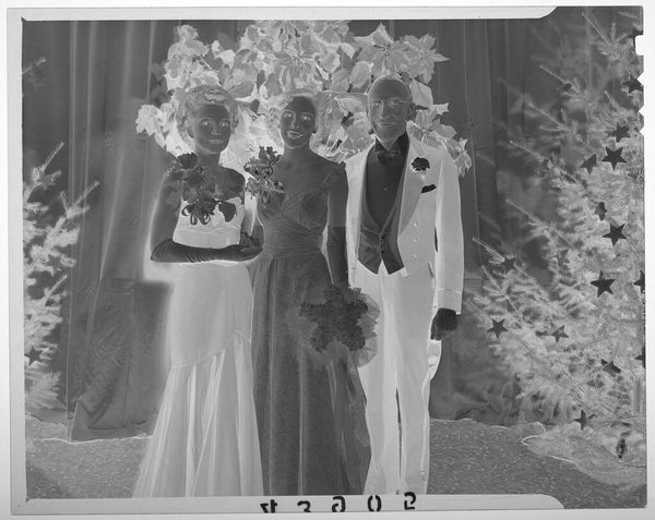 Editor: This is an untitled photograph by Martin Schweig of a young woman and her grandmother at what looks like a debutante party. It seems to capture a significant moment, but I'm struck by the starkness of the image. What do you see in this piece? Curator: I see a powerful commentary on class and gender roles. The debutante ball, historically, was a ritualistic display of young women entering society, reinforcing specific expectations. The grandmother's presence suggests a lineage of these traditions. Considering this was captured by Martin Schweig, how do we understand his position relative to this social scene? Editor: That's interesting! I didn't consider the photographer's role. Curator: Exactly. It prompts us to question whose gaze is shaping this narrative and what power dynamics are at play. It also makes you wonder what the young woman is thinking in this moment. Editor: I am going to keep these questions in mind!