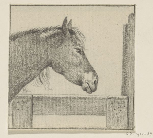 Curator: A touching image. It's "Nissen i Tirup fodrer den hvide hoppe," made in 1842. The artist remains anonymous. This work, held at the SMK, utilizes pencil on paper in print form. Editor: It has an intimate, almost dreamlike quality. The texture created by the pencil is gorgeous, but there's an odd intimacy that is vaguely unsettling. Is the horse friendly or a bit burdened? Curator: That perceived tension speaks volumes. The piece exemplifies the Romantic era's fascination with folklore. The "nisse" or house gnome, is a recurring figure in Scandinavian folklore, often depicted as guardians of farms and animals. Their image was often connected to national identity. Editor: Fascinating. The horse’s symbolism as an emblem of strength and freedom is clear, but it feels secondary. It looks more like this Nissen owns it, instead of them being mutually free spirits together in nature. Does the Nissen's feeding of the horse suggest more of a subservient arrangement than pure friendship? Curator: It's a relationship rooted in tradition and agrarian society, more like they need each other than pure fun, so servitude is plausible. The farmer relied on the nisse for the farm's prosperity and animal well-being, with this care also acting as payment for the nisse's protection. This wasn’t always voluntary, either: Danish folklore speaks to a "nisse contract," meaning it might not have been their free choice. Editor: The pointed cap, the carefully drawn beard—they visually reinforce the gnome's historical presence in the popular imagination. It seems crucial, then, to note this contract wasn't about an agreement, it's about expectation, fear, and, sometimes, uneasy respect, as you have alluded to. What a tight space that poor creature must inhabit in society. Curator: Precisely. It is, at its core, an intriguing glimpse into 19th-century rural beliefs. The figure and context that comes with them provided comfort and cultural cohesion for communities during the rise of modernity. Editor: And even a warning that these ways of life need constant upkeep! It seems that looking closer has opened the work to richer ideas about ownership and hidden meanings that weren't immediately obvious. Curator: Indeed. Visual depictions often mirror complex social structures. It's nice to see one from the opposite side that we would normally consider!